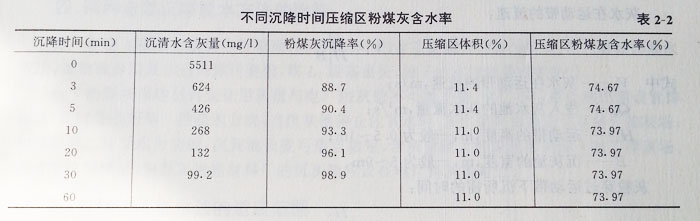 (1)北京熱電廠粉煤灰懸浮液沉降特性見表2-1。